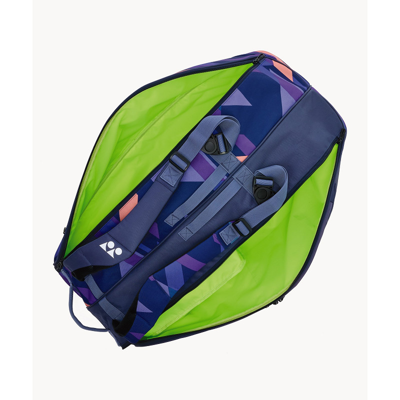 De Yonex Pro Racket Bag 92426 EX Midnight n is een mooie 2 vaks racket tas om al jouw spullen mee naar de training of toernooien te nemen. De tas is van een zeer hoge kwaliteit gemaakt en heeft 2 grote vakken, 1 'natte kleding' vak en 1 kleiner vak aan de voorzijde. Uiteraard heeft de tas twee comfortabele draagbanden waarmee je de tas op jouw rug kan dragen en makkelijk mee kan nemen naar trainingen of wedstrijden.